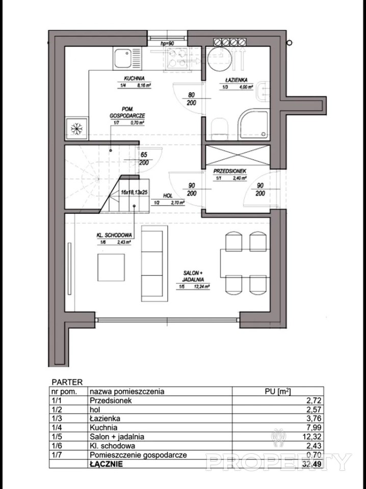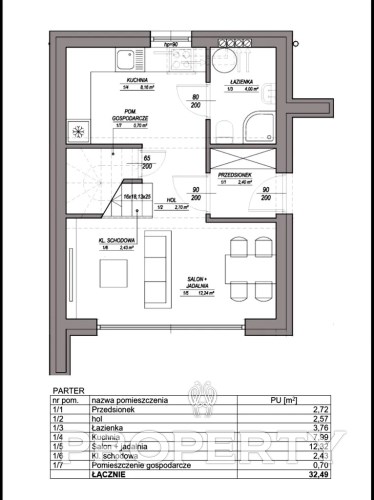 Domy o powierzchni 61,4 m², z funkcjonalnym układem: na parterze salon z kuchnią, łazienka, wiatrołap i pomieszczenie gospodarcze, na poddaszu dwa pokoje i druga łazienka.