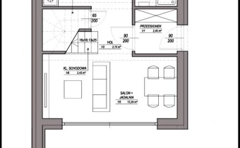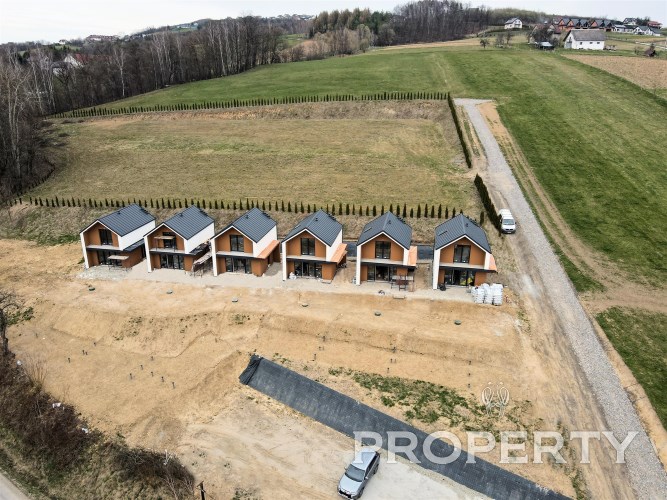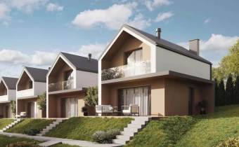 Każdy z domów oferuje 61,4 m² powierzchni użytkowej i został zaprojektowany w sposób funkcjonalny, zapewniający komfort użytkowania. Na parterze znajduje się wiatrołap, salon z miejscem do wypoczynku, kuchnia, łazienka oraz pomieszczenie gospodarcze. Poddasze obejmuje dwa pokoje oraz drugą łazienkę, co pozwala na wygodne rozdzielenie strefy dziennej i prywatnej.