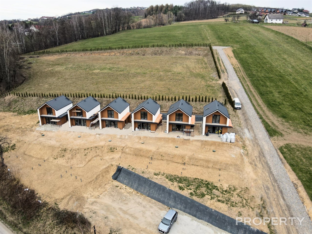Inwestycja wyróżnia się kameralnym charakterem – obejmuje jedynie sześć domów. Do dyspozycji mieszkańców przewidziano utwardzony parking z 2 miejscami postojowymi do każdego z domów. Nieruchomości wyposażone są w pełne media: prąd, wodę oraz indywidualną przydomową oczyszczalnię.