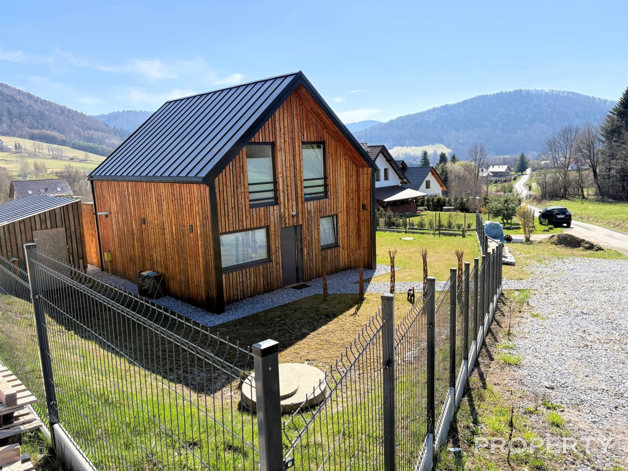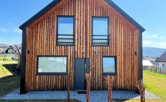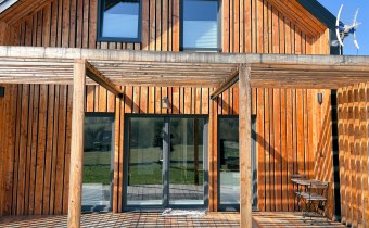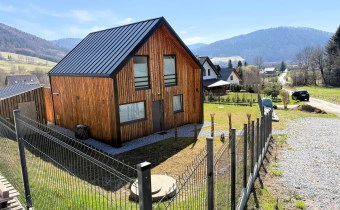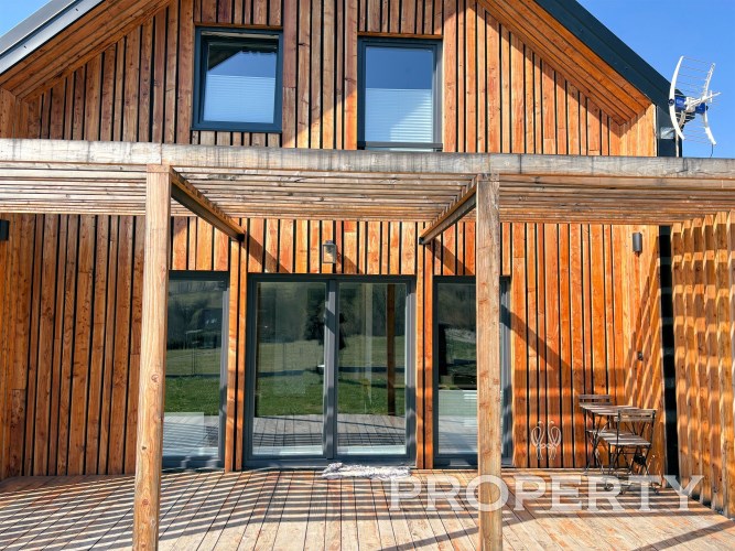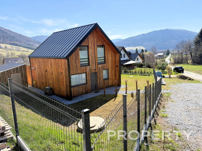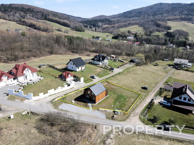 Działka jest w całości ogrodzona siatką metalową na podmurówce betonowej. Nowoczesna bryła budynku w połączeniu z naturalnym otoczeniem sprawia, że nieruchomość idealnie sprawdzi się zarówno jako dom całoroczny, jak i rekreacyjny