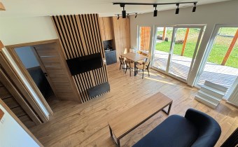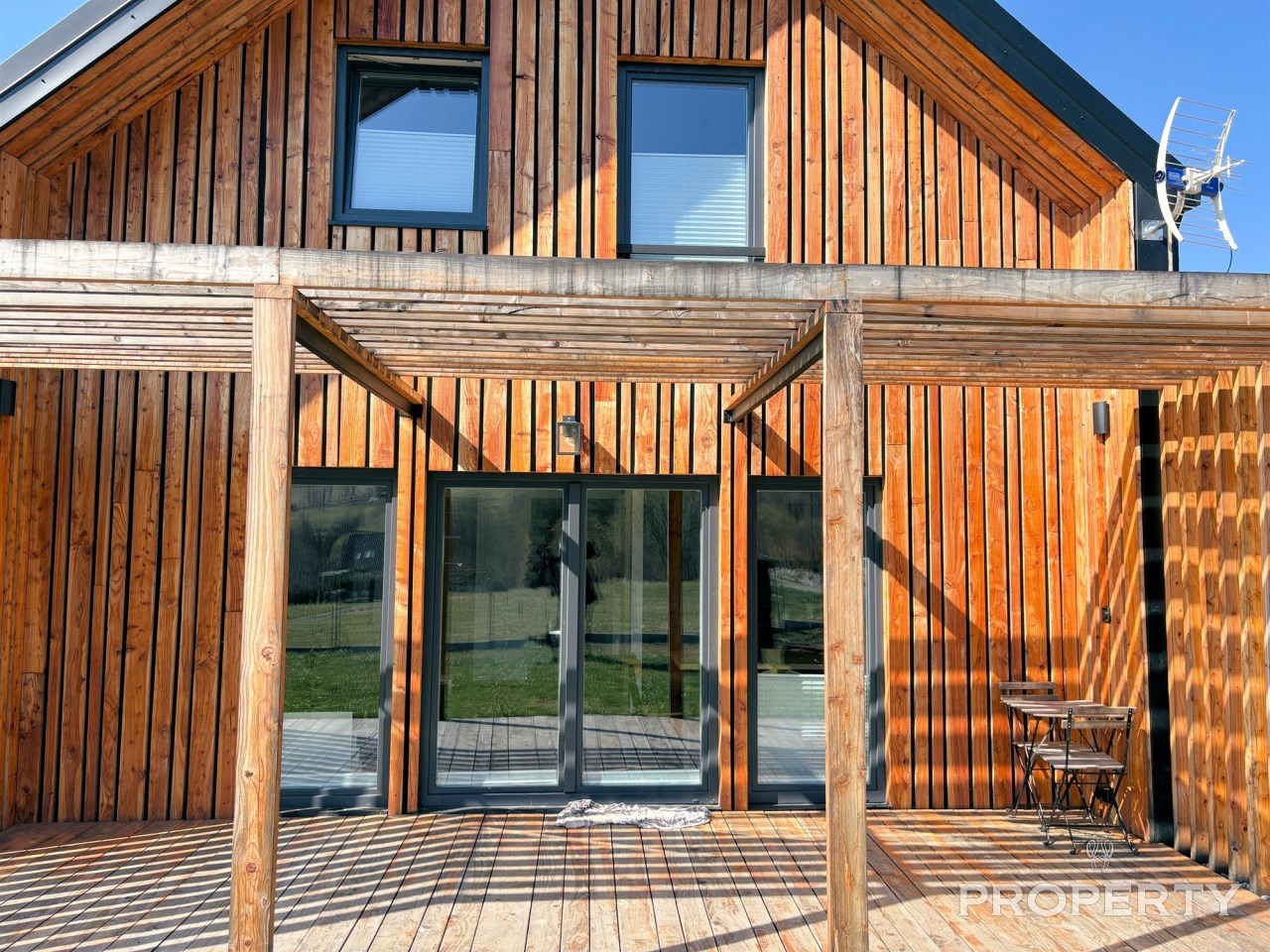Dom wybudowany w latach 2024/2025 w technologii szkieletowej (drewnianej), w stanie do zamieszkania. Przemyślany układ pomieszczeń obejmuje 4 pokoje oraz przestronny salon z aneksem kuchennym z którego prowadzi wyjście na taras. Do dyspozycji są również dwie łazienki – jedna na parterze z prysznicem, druga na piętrze z wygodną wanną. Gustowne wyposażenie.