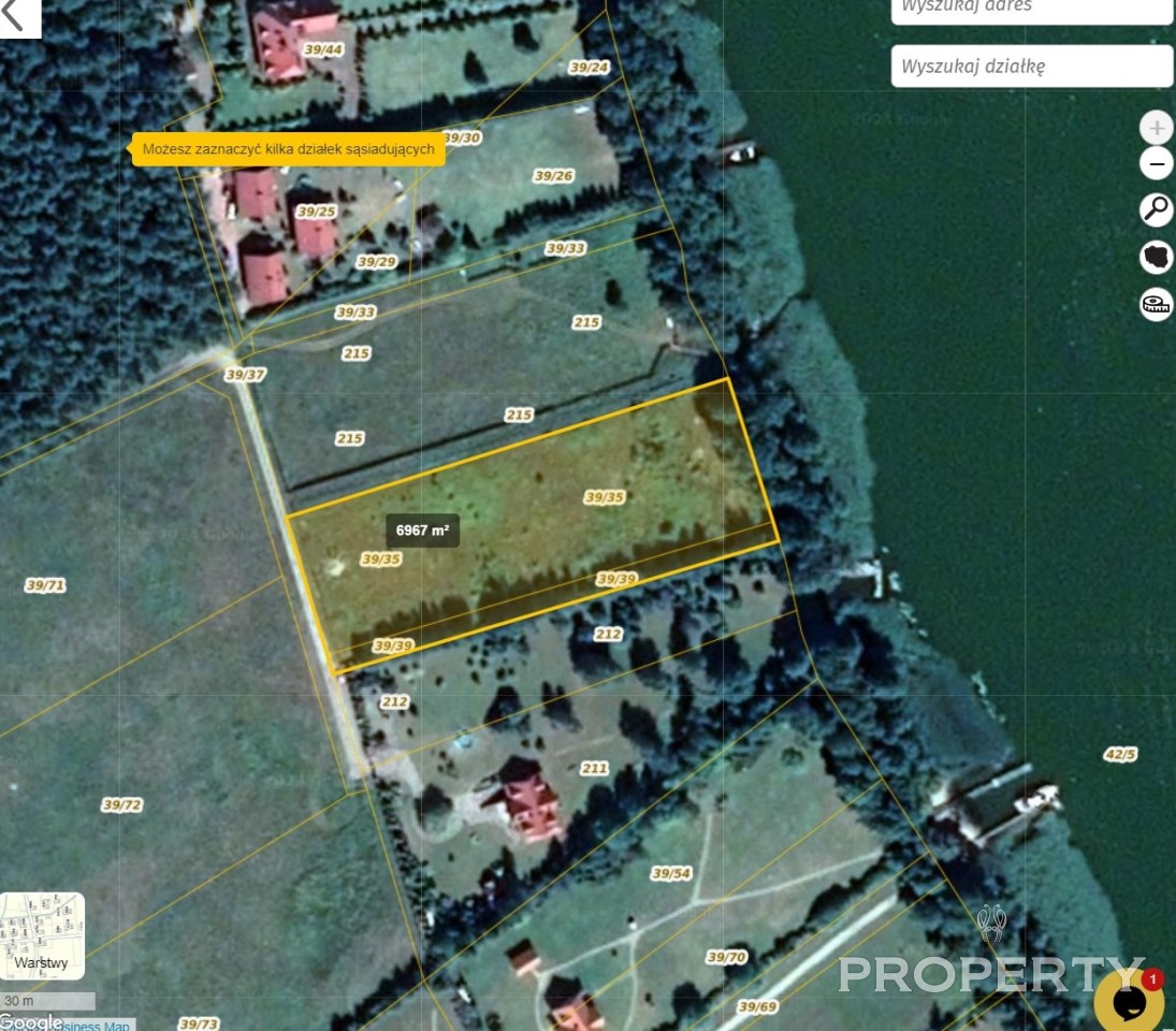 MAZURY, IZNOTA , Bełdany na sprzedaż działki w pierwszej linii jeziora o łącznej powierzchni