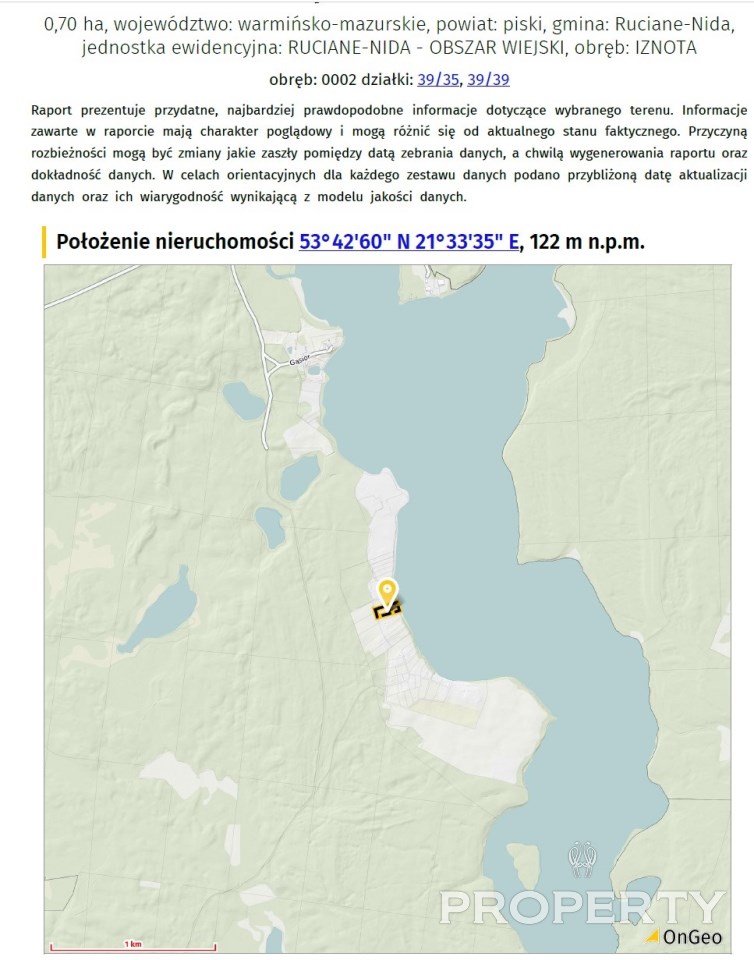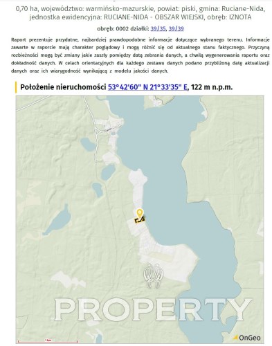 Działki o numerach  39/35 i  39/39 obręb 0002- Iznota, Ruciane Nida gmina wiejska, Powiat Piski