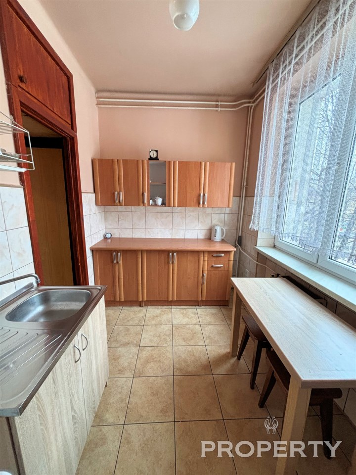 Na podłogach w pokojach parkiet jesionowy. W kuchni, przedpokoju płytki, łazienka do remontu płytki i urządzenia starego typu. Okna PCV w dobrym stanie. Mieszkanie umeblowane.